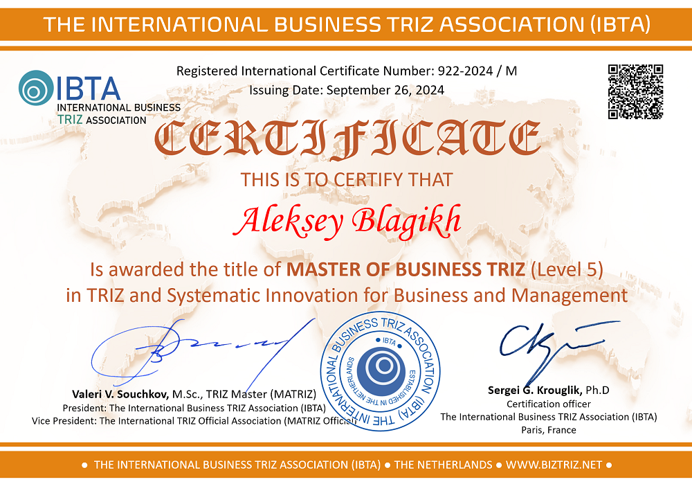 • Experience of teaching Business TRIZ.
